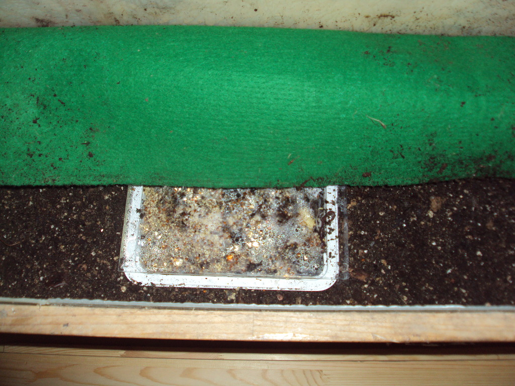 색이 진한 부분은 코코피트를 섞어준 부분이고 좀 마른듯 싶은 부분은 사과찌꺼기를 넣어주고 흙을 가볍게 덮은 것입니다.