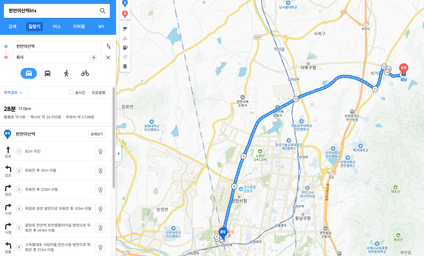 => 다 필요 없고, 천안역으로 와서 버스 타고 들어오는 게 돈 덜 들고, 덜 피곤합니다. 시간이 조금 더 걸리지만 넉넉하게 나서시면 이게 제일 좋습니다.