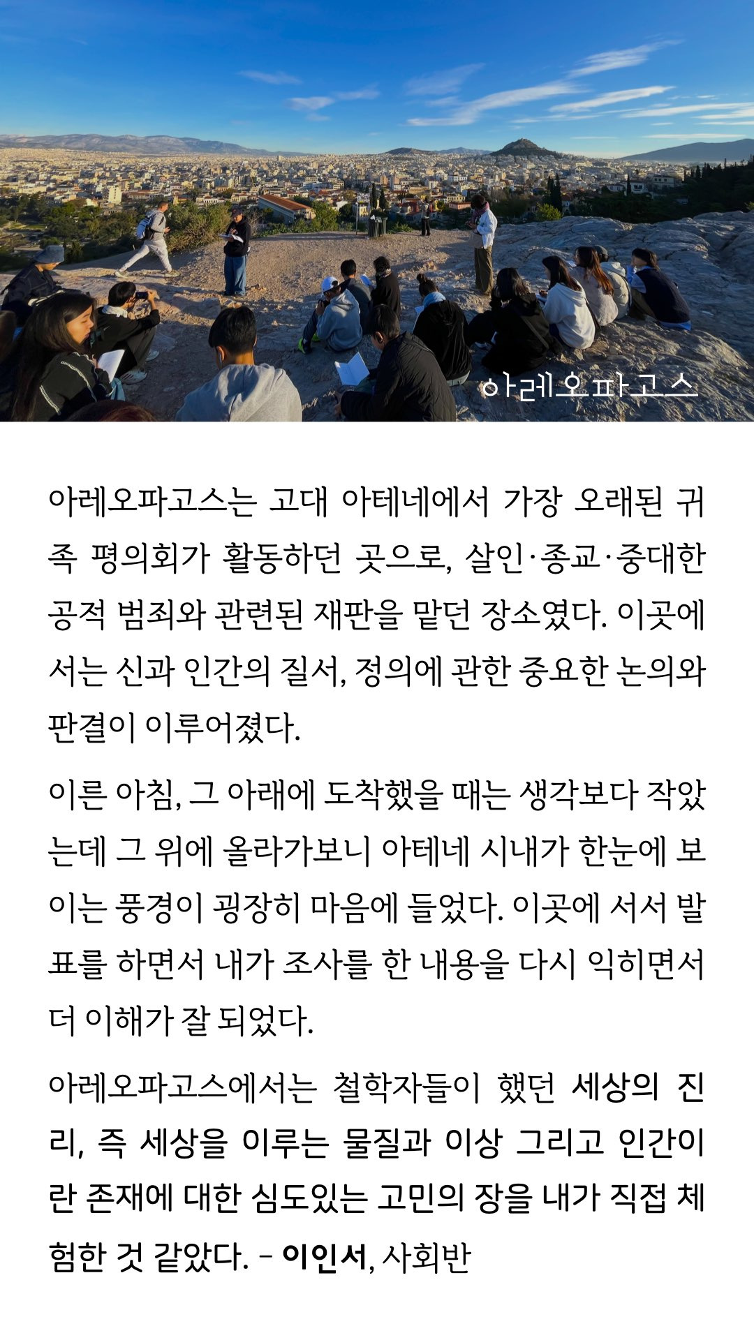 책숲 그리스 통전여행 후기 발췌 ppt 작성자숲을지나서|작성시간25.12.16|조회수57 목록 댓글 0 글자크기 작게가 글자크기 크게가 다음검색 현재 게시글 추가 기능 열기 북마크 공유하기 신고 센터로 신고 댓글 댓글 0 댓글쓰기 답글쓰기 댓글 리스트