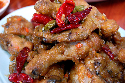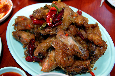마늘후라이드와 비슷한 맛에 매운고추를 썼지만 닭에는 매운맛이 거의 베이지 않았습니다. 찜닭 외엔 그냥 반반이 최고인 것 같아요.