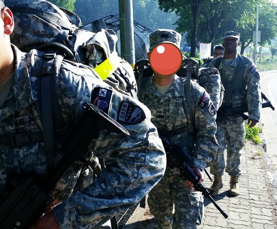 "다른 unit보다 강인한 체력을 가져야 한다, MP는 set the standard를 해야 하므로 품행(code of conduct)뿐만 아니라 체력(physical activity)도 모범이어야 한다"는 소대/중대장과 선임하사의 주장하에 늘 PT는 쉽지 않았습니다. push-up, sit-up은 교본대로(by the book) 정확하게 해야 하는 것은 기본이고(다른 unit들은 KTA가 끝나고 나서 자대배치받고 나면 그렇게 빡세게 PT하고 PT test할 때도 엄격한 자세를 요구하지는 않습니다) 달리기를 어찌나 시켜대시는지 다른 unit은 PT 끝내고 막사로 들어가는데 저희는 계속 뛰고 있었습니다. 미헌병대 MP 중대원 전체가 다른 unit들에 비해서 월등히 달리기를 정말 잘하고요, 특히 제가 있던 4소대 line-platoon(파견소대)는 7개 소대가 있는 전체 중대에서 1등이 될만큼 빡센 선임하사와 함께 했습니다. 논산훈련소에 입소하면 매일 아침 구보를 합니다. 논산훈련소 퇴소하고 나서 캠프잭슨 Camp Jackson에서 KTA하면서 아침 저녁으로 달리기 하는 것이 더 힘이 듭니다. 하지만 미헌병대에 배치받고 하는 달리기가 2배 이상 힘이 들었습니다. 미군 자대배치 초반에는 달리기가 정말 어려웠는데요, 카투사일병 진급하고 좀 있으니까, 4-50분을 빠른 속도로 뛰어도 숨도 안 찹니다. 그러다 일산토익 임희조 샘 SK(시카, 선임병장)이 되면서 후임들의 복지를 위해 PT도 당당하게 안 나가다 보니, 다시 힘들더군요. ^^ 자세한 얘기는 뒤에서.