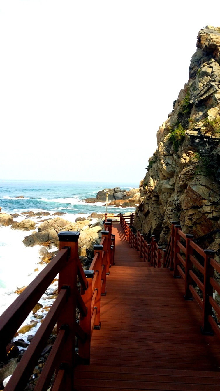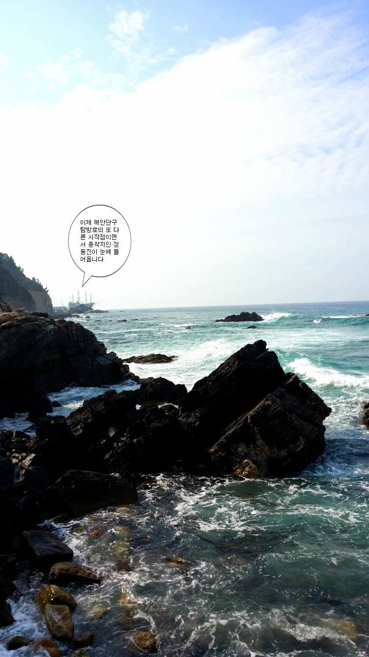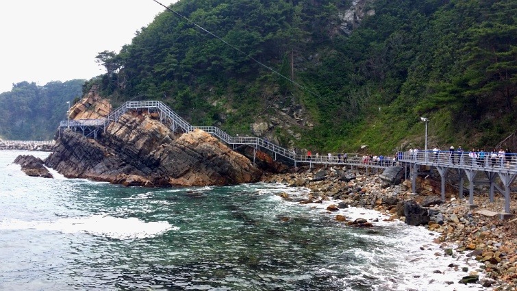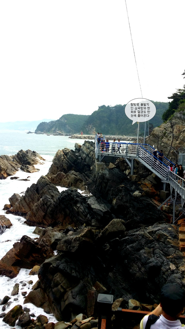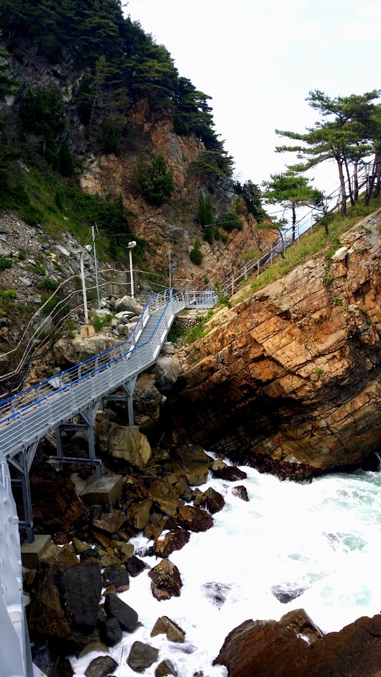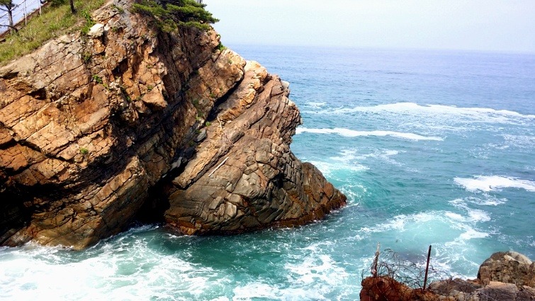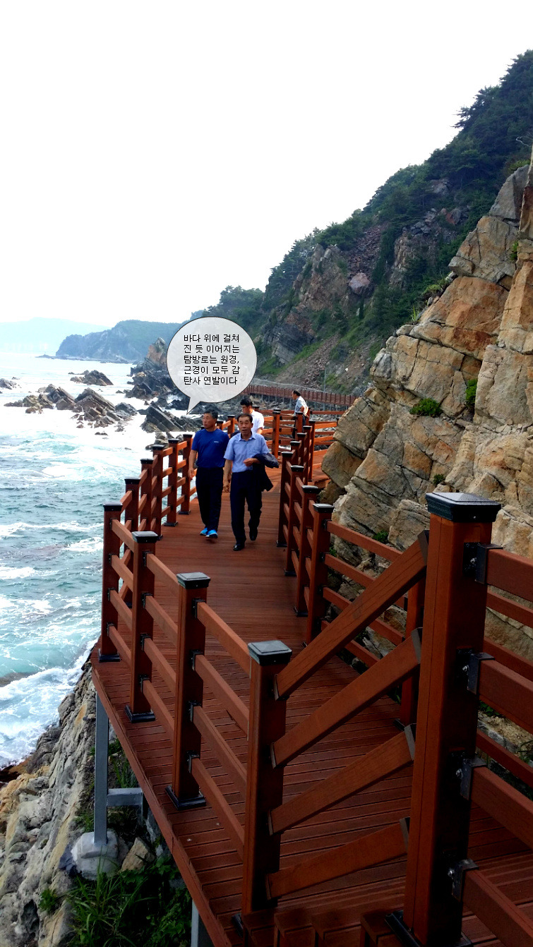 ♣정동진 바다부채길 – (정동진~심곡항) 국내 최장거리 해안단구(천연기념물 제437호) 탐방로인 강릉 정동진∼심곡항 구간 ‘바다부채길’이 2016년 10월 17일부터 일반에 개방되었다. 정동심곡 바다부채길은 지난 2015년 국토부 공모사업인 동서남해안 초광역 개발권 중점사업으로 선정돼 국·도비와 시비 등 모두 70억원을 투입, 총길이 2.86㎞ 규모로 조성되었다. 이번에 탐방로가 개설된 정동진 해안단구는 2,300만년 전 한반도의 지각변동을 관찰할 수 있는 국내 최장의 해안단구지역으로 오랜 세월 파도에 의해 침식되어 형성된 넓은 파식대가 지반 융기나 해수면 하강으로 육지화 된 지역이다. 바다부채길은 분단 이후 해안경비를 위한 군(軍) 순찰로로 사용됐을 뿐, 지금까지 대한민국 건국이래 단 한번도 민간인에게 개방된 적이 없는 곳으로 국방부와 문화재청의 협의기간과 허가기간에만 2년의 시간이 소요되었다고 한다. 정동바다부채길’은 정동지역의 부채끝 지명에서 착안했다. 탐방로가 위치한 지형의 모양이 바다를 향해 부채를 펼쳐놓은 듯한 모양이다. 동해바다의 깨끗하고 탁트인 시원함과 지형 특징을 살린 기억하기 쉽고 부르기 쉬운 명칭으로 작명되었으며. 2016년 10월17일 오후3시 개방되었다