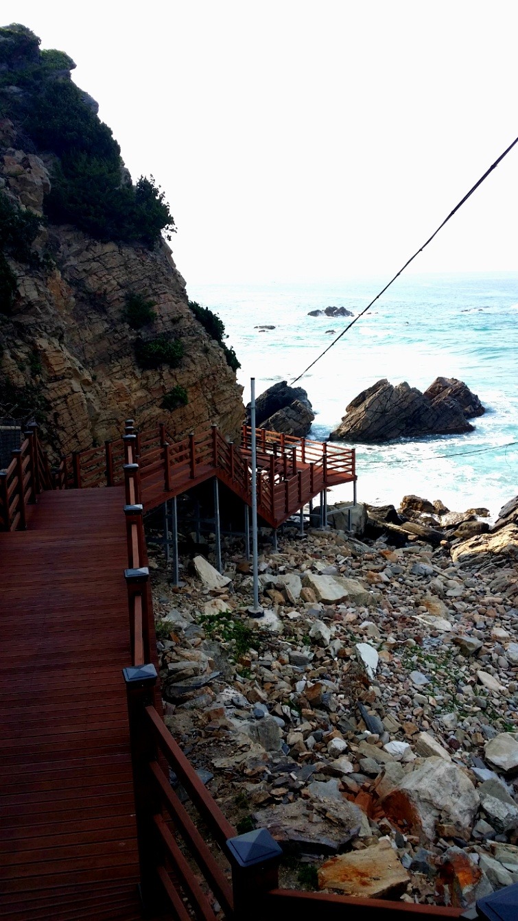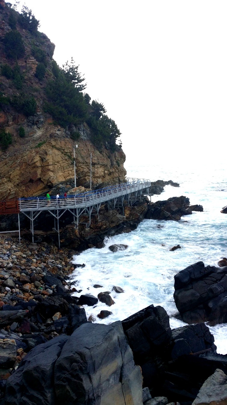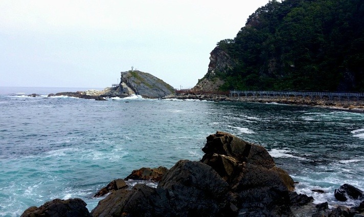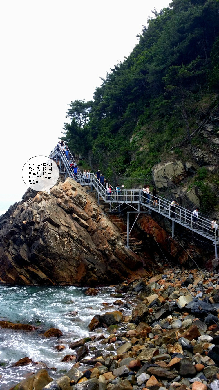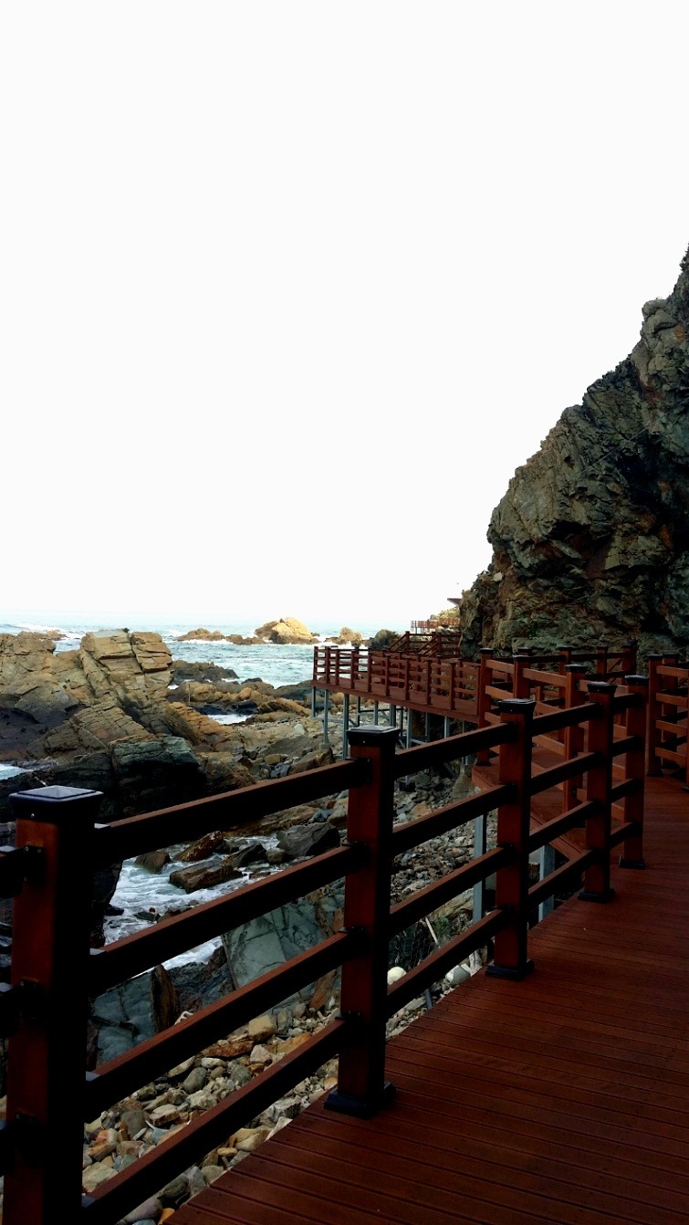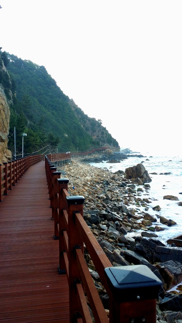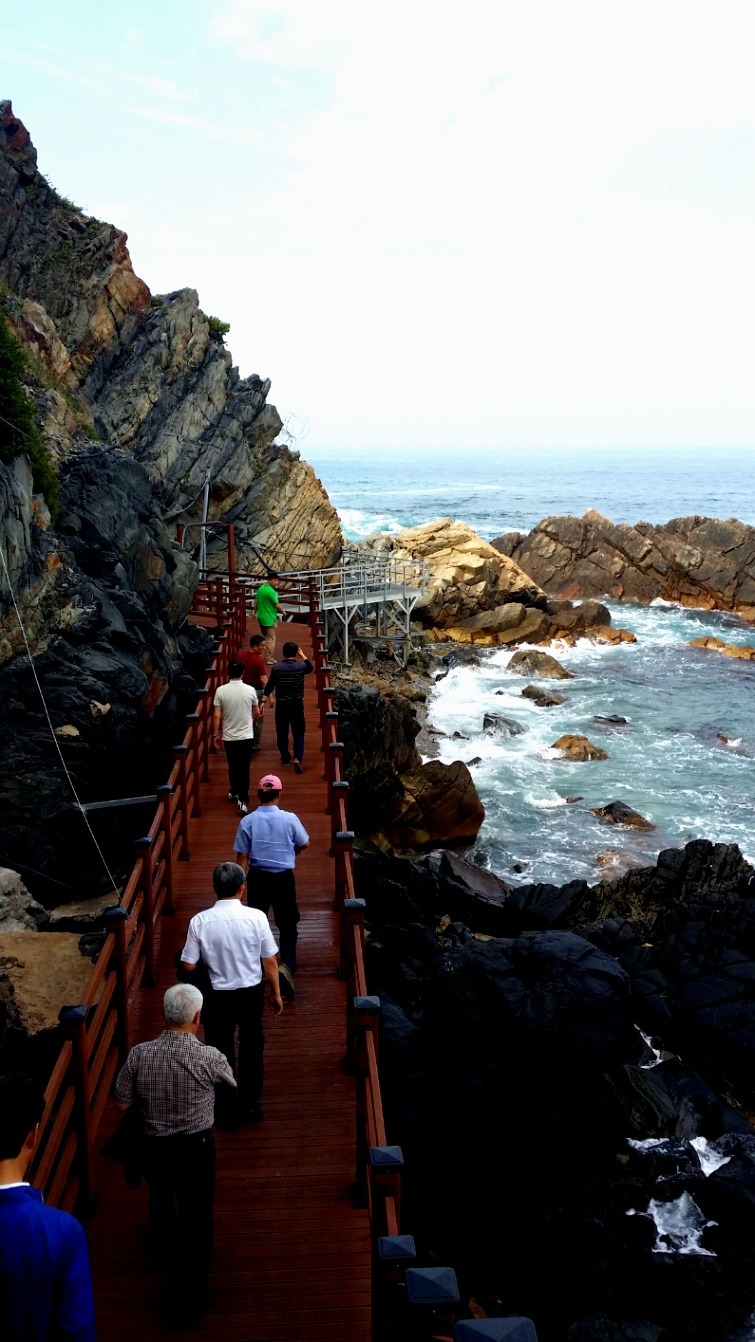 ♣정동진 바다부채길 – (정동진~심곡항) 국내 최장거리 해안단구(천연기념물 제437호) 탐방로인 강릉 정동진∼심곡항 구간 ‘바다부채길’이 2016년 10월 17일부터 일반에 개방되었다. 정동심곡 바다부채길은 지난 2015년 국토부 공모사업인 동서남해안 초광역 개발권 중점사업으로 선정돼 국·도비와 시비 등 모두 70억원을 투입, 총길이 2.86㎞ 규모로 조성되었다. 이번에 탐방로가 개설된 정동진 해안단구는 2,300만년 전 한반도의 지각변동을 관찰할 수 있는 국내 최장의 해안단구지역으로 오랜 세월 파도에 의해 침식되어 형성된 넓은 파식대가 지반 융기나 해수면 하강으로 육지화 된 지역이다. 바다부채길은 분단 이후 해안경비를 위한 군(軍) 순찰로로 사용됐을 뿐, 지금까지 대한민국 건국이래 단 한번도 민간인에게 개방된 적이 없는 곳으로 국방부와 문화재청의 협의기간과 허가기간에만 2년의 시간이 소요되었다고 한다. 정동바다부채길’은 정동지역의 부채끝 지명에서 착안했다. 탐방로가 위치한 지형의 모양이 바다를 향해 부채를 펼쳐놓은 듯한 모양이다. 동해바다의 깨끗하고 탁트인 시원함과 지형 특징을 살린 기억하기 쉽고 부르기 쉬운 명칭으로 작명되었으며. 2016년 10월17일 오후3시 개방되었다