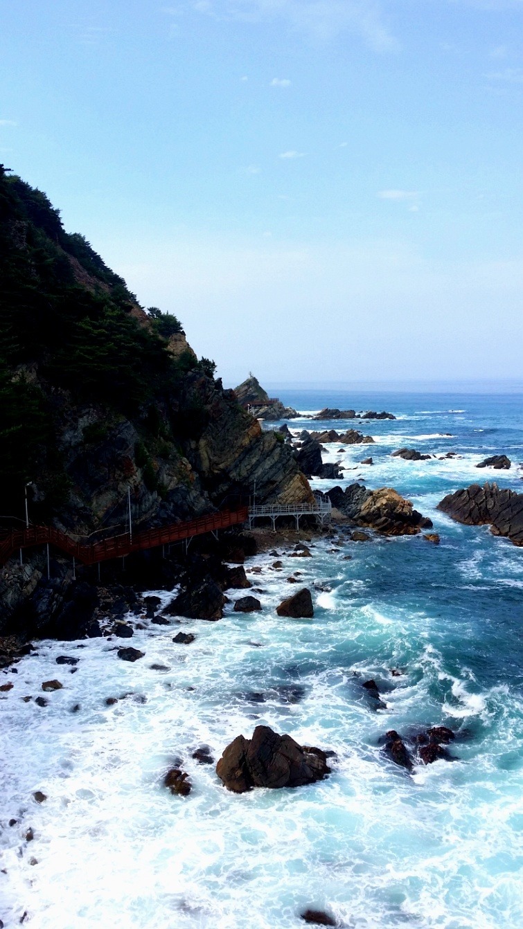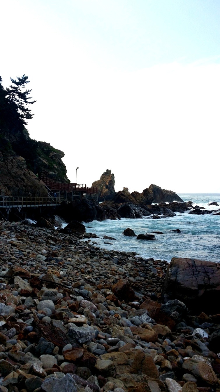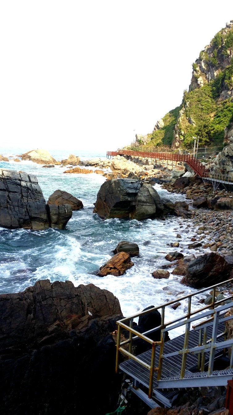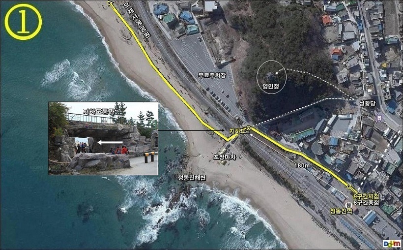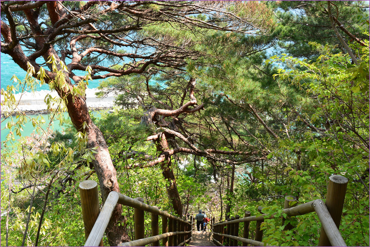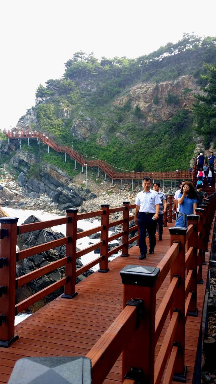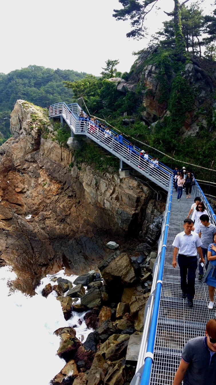 ♣정동진 바다부채길 – (정동진~심곡항) 국내 최장거리 해안단구(천연기념물 제437호) 탐방로인 강릉 정동진∼심곡항 구간 ‘바다부채길’이 2016년 10월 17일부터 일반에 개방되었다. 정동심곡 바다부채길은 지난 2015년 국토부 공모사업인 동서남해안 초광역 개발권 중점사업으로 선정돼 국·도비와 시비 등 모두 70억원을 투입, 총길이 2.86㎞ 규모로 조성되었다. 이번에 탐방로가 개설된 정동진 해안단구는 2,300만년 전 한반도의 지각변동을 관찰할 수 있는 국내 최장의 해안단구지역으로 오랜 세월 파도에 의해 침식되어 형성된 넓은 파식대가 지반 융기나 해수면 하강으로 육지화 된 지역이다. 바다부채길은 분단 이후 해안경비를 위한 군(軍) 순찰로로 사용됐을 뿐, 지금까지 대한민국 건국이래 단 한번도 민간인에게 개방된 적이 없는 곳으로 국방부와 문화재청의 협의기간과 허가기간에만 2년의 시간이 소요되었다고 한다. 정동바다부채길’은 정동지역의 부채끝 지명에서 착안했다. 탐방로가 위치한 지형의 모양이 바다를 향해 부채를 펼쳐놓은 듯한 모양이다. 동해바다의 깨끗하고 탁트인 시원함과 지형 특징을 살린 기억하기 쉽고 부르기 쉬운 명칭으로 작명되었으며. 2016년 10월17일 오후3시 개방되었다