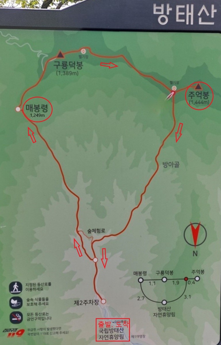 A팀: 휴양림~ 매봉령~ 주억봉~ 휴양림 (11km 6시간)