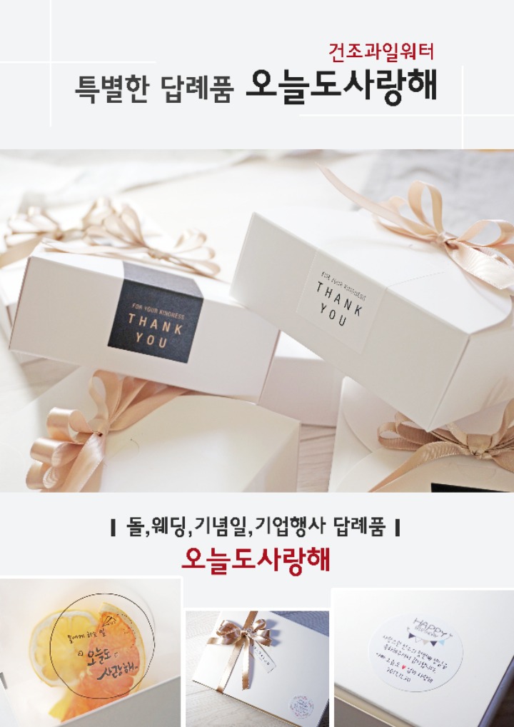 연말연시 각종행사엔~ 작성자딸기보름달|작성시간17.12.23|조회수42 목록 댓글 0 글자크기 작게가 글자크기 크게가 오늘도사랑해 예쁜답례품을 선물하세요~ 오늘도사랑해 : 네이버쇼핑 스토어팜물에게.. 나에게.. '오늘도사랑해'.토닥토닥워터.건조과일.건과일.레몬녹차수storefarm.naver.com 다음검색 현재 게시글 추가 기능 열기 북마크 공유하기 신고 센터로 신고 댓글 댓글 0 댓글쓰기 답글쓰기 댓글 리스트
