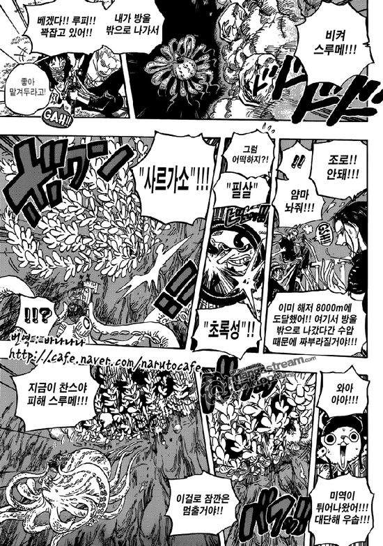 루피와 쵸파가 우솝 엄청 잘했다면서 칭찬을 하고 있죠. 그런데 옆에 조로 표정...