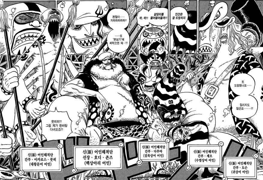 나머지 칠무해들은 다 실력이 사황이나 해군대장 급이고, 모리아와 쿠마만 그보다 한 수 아래 같아요.