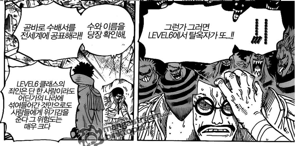 1원수 2대장과 루,조,상이 싸우는 장면은 인상깊었지만, 검은수염 일당 중 탈옥수들이 아직도 죄수복 입고 있다는게 의아하네요;; 무려 몇달간 (드레스로자 에피소드 내내) 나올 오프닝인데 밀짚모자 일당처럼 아무 옷이나 입혀도 될텐데 말이죠. 어쨌든 잘봤습니다. 애니 내용은 700화에 해당하네요.
