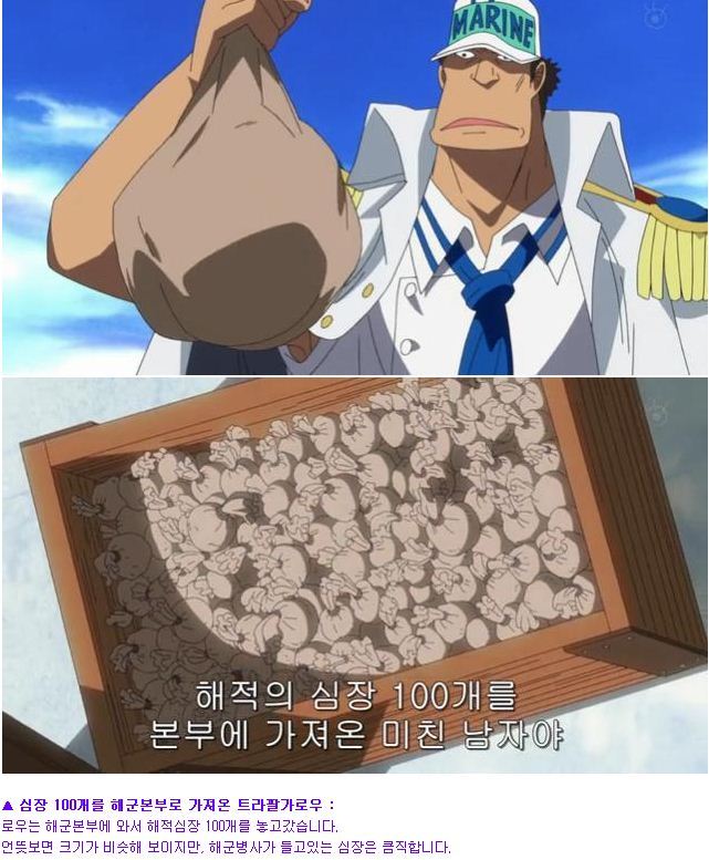 아마 잔챙이들(임펠다운 레벨1급) 해적의 심장은 천~만개를 가져다 줘도 별로 효과가 없었을 것입니다.