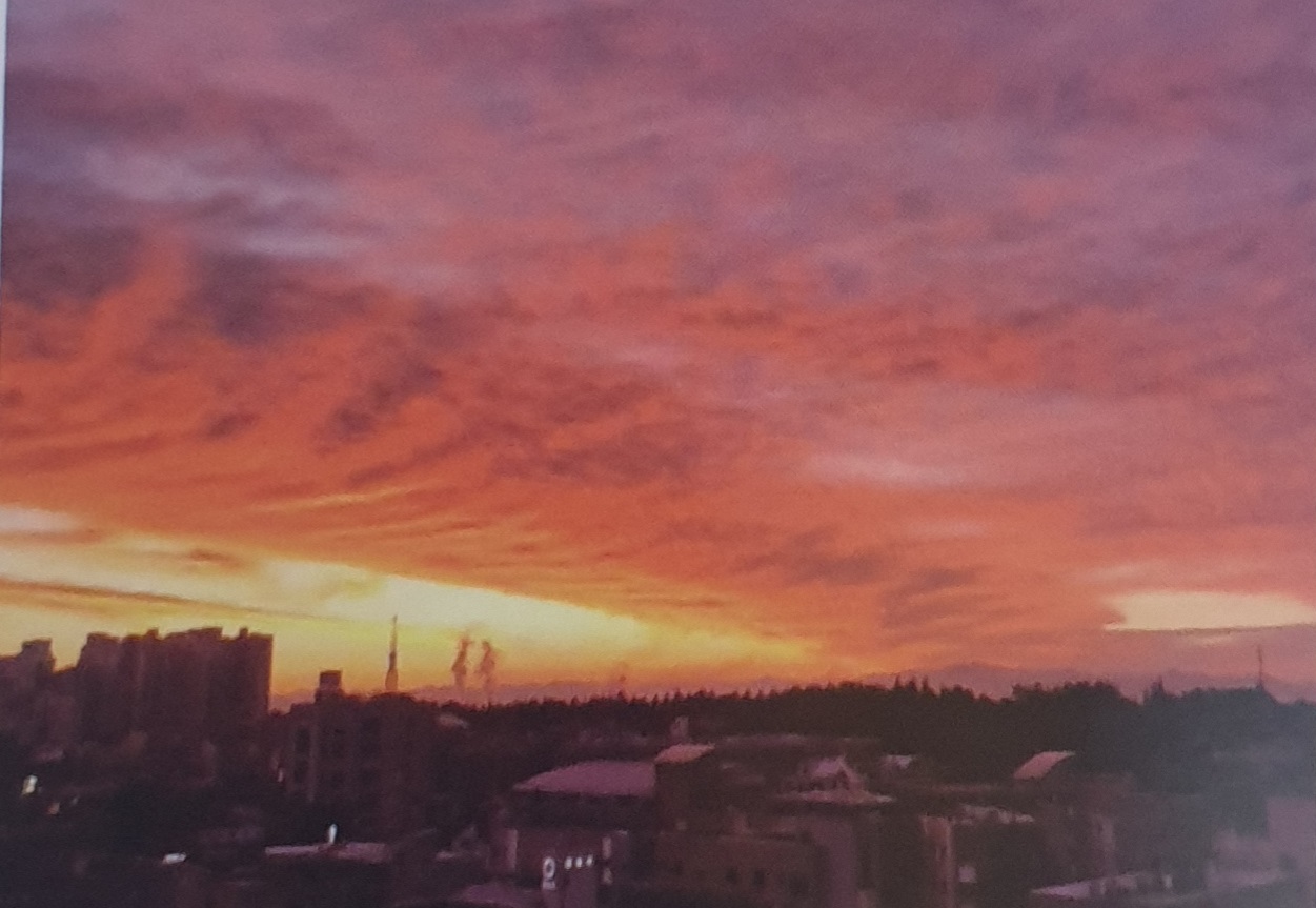 이상과 같은 디카시가 지니는 ‘풍경(=自然)의 내면의식(=自我)’이라는 본질을 상기하면서 「새벽 노을」의 행간 속으로 들어가 본다. 디카시를 통해 내면의식의 실존을 채굴하고 이를 통해 自我를 발견하는 비법을 터득하고 있는 김애경 시인의 디카시 쓰기의 멋스러움이 번득인다. 우선 제목이 흥미롭다. 역설(paradox)은 언어의 유희를 바탕으로 하지만 신선한 긍정으로 민낯을 드러내며 감동을 준다. 저 붉게 노을 지는 새벽은 벌써 우리의 내면으로 지는 저녘 노을이 되었으며 이는 다시 숭고한 '다비식'으로 인식의 확산이 이루어진다. 말하자면 線(= 관념)에서 色 (=감각)으로의 시적 패라다임의 전환에 성공한 것이다. 환언하면 ‘표면(단순한 외형)’보다는 ‘깊이(내면의 인식)’로 시적 감흥이 시인의 디지털 카메라 포커스를 붙들어 맸다는 것이다.