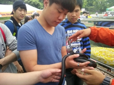 호준이가 뱀을 만지는거 보고 기겁해서 멀리서 사진찍었습니다!
