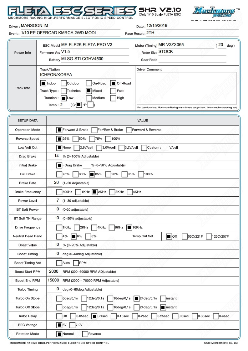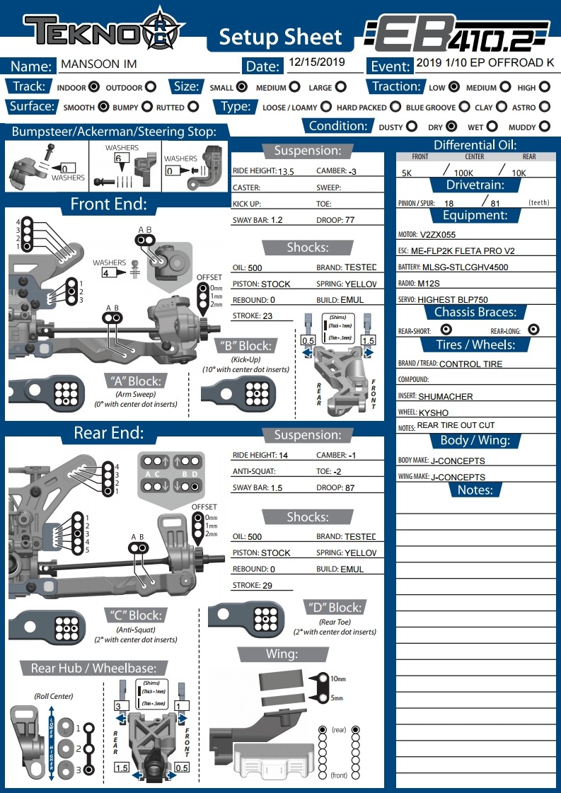 [세팅시트]2019 1/10 EP OFFROAD KMRCA 대회 TEKNORC EB410.2 & MUCHMORE ESC SETUP SHEET