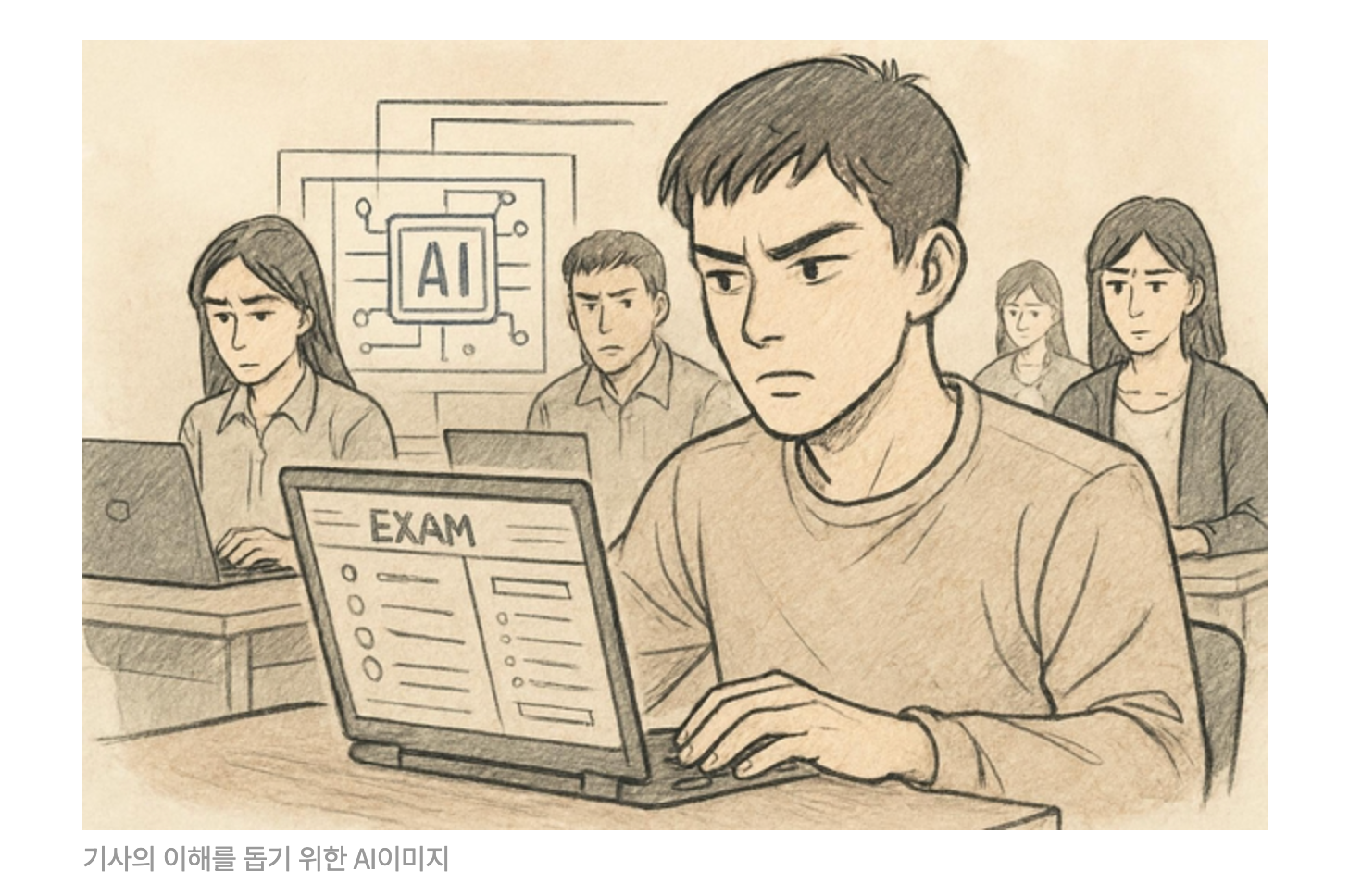 최근 언론에서는 ‘AI 이미지’라는 캡션을 달고 생성형 AI가 만든 시각 자료를 기사에 활용하는 사례가 늘고 있다. 실제로 문화일보는 대학가에서 발생한 AI 활용 부정행위 사례를 보도한 기사에서, 이미지 생성 AI로 제작한 ‘남학생의 시험 장면’을 기사 이미지로 사용한 바 있다. 실제 촬영 없이 보도용 이미지를 대체하는 방식이 일부 기사에서 확인되고 있다.