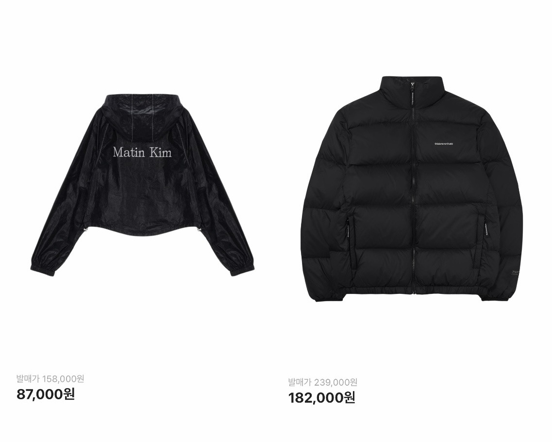 그러나 이 비싼 가격을 지불하고 옷을 받은 소비자들은 고개를 젓는다. 실제 시장의 가치, 즉 리셀 플랫폼에서 형성되는 거래 가격은 정가 대비 수십 % 낮은 수준이다. 예를 들어, 마뗑킴(Matin Kim)의 점퍼는 발매가 15만 8천 원이지만, 리셀 플랫폼 크림(KREAM)에서 8만 7천 원에 실거래되고 있다. 또한 디스이즈네버댓의 다운 재킷 역시 발매가 23만 9천 원 대비 크림에서 18만 2천 원에 거래되는 등, 소비자가 지불한 가격의 상당 부분이 실제 가치로 인정받지 못하고 곧바로 증발하는 '가격 거품' 현상이 만연하다.