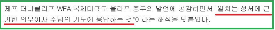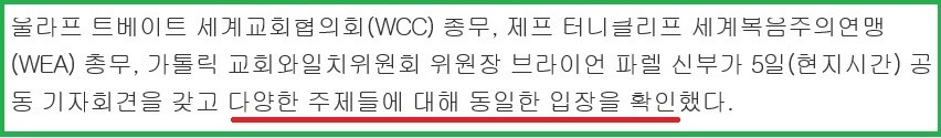 한국에서는 대한예수교장로회 통합교단과 NCCK가 위에서