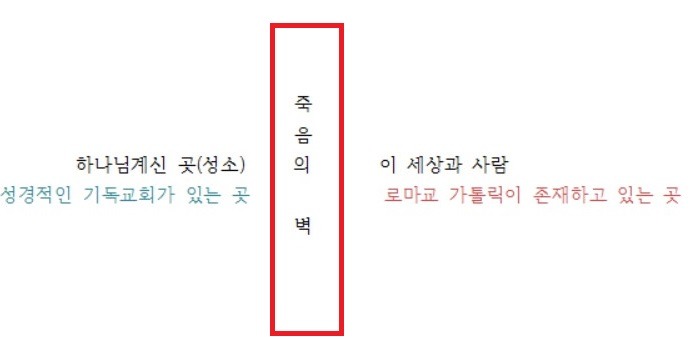 아래와 같이 하나님과 이 세상과 사람사이에는 죽음이 벽이 있고