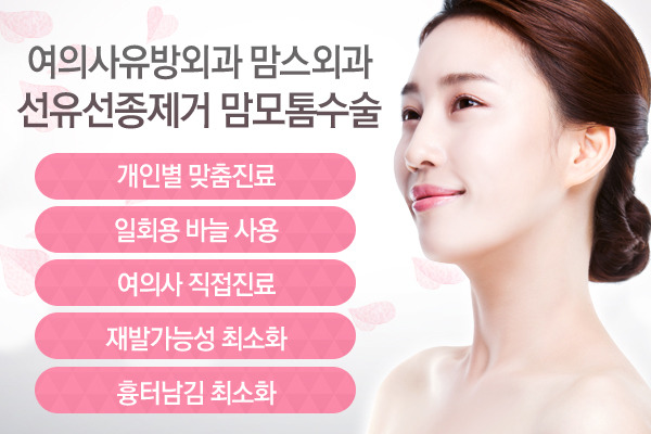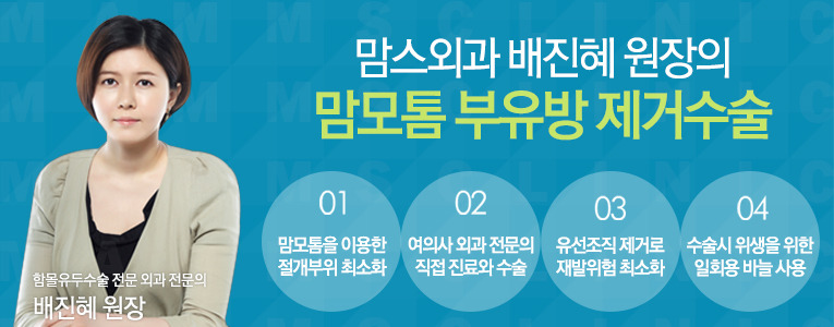 여자에게 민감한 흉터는 가려주고 확실한 유선제거로 재발 가능성은 낮춘 안심진료와