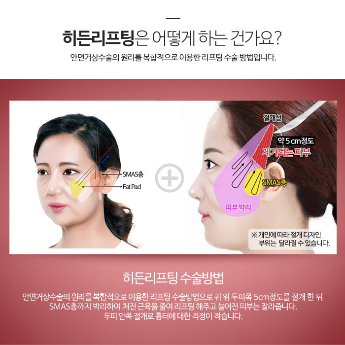 안면거상술 원리를 이용한 수술이기 때문에 안면거상술 효과를 얻을 수 있고