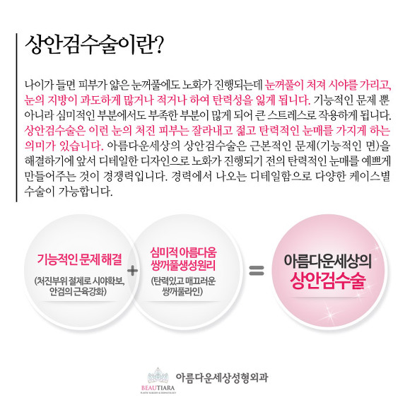 아름다운세상성형외과는 피부의 처짐정도와,피부두께, 쌍꺼풀 유무등을