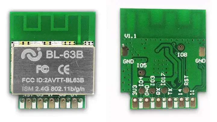 BL-63B 모듈이 있는 TYWE2S에 대한 참조도 있습니다 . TYWE2S는 모듈 폼 팩터이자 "Wi-Fi MAC 및 TCP/IP 프로토콜의 모든 기능 라이브러리를 통합하는 RTOS 플랫폼"인 것으로 보이며 Tuya 의 ESP8285 모듈 에서도 사용 되므로 BL-63B BL602 모듈은 동일한 핀아웃 및 펌웨어로 바로 교체할 수 있습니다.