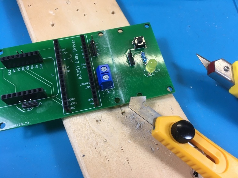 11. 보시다시피 기판을 미리 자르는걸 깜박해서 아크릴커터로 잘랐습니다. 기판이 두껍기도 하고 이미 납땜된 부품들이 걸리적거리기도 해서 좀 지저분하게 잘렸습니다.