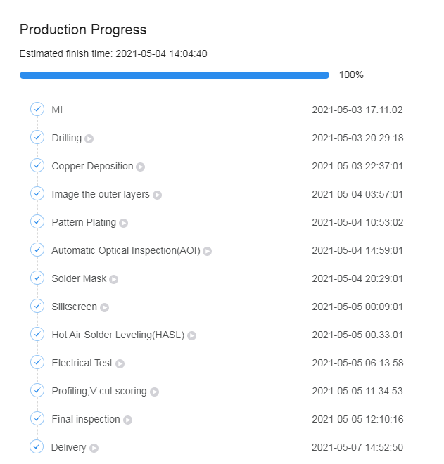 7. 주문이 완료되면 제작은 거의 완전자동인 것 같습니다. 제작 진행상황이 실시간으로 업데이트됩니다.