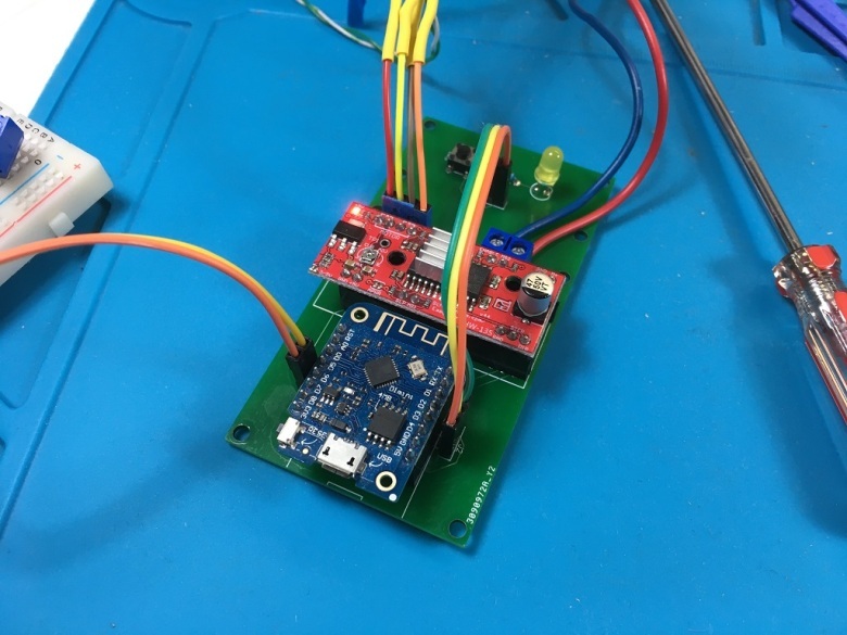 10. 부품들 올려서 납땜하고 보드 꼽고 테스트해보니 다행이 잘 작동합니다.