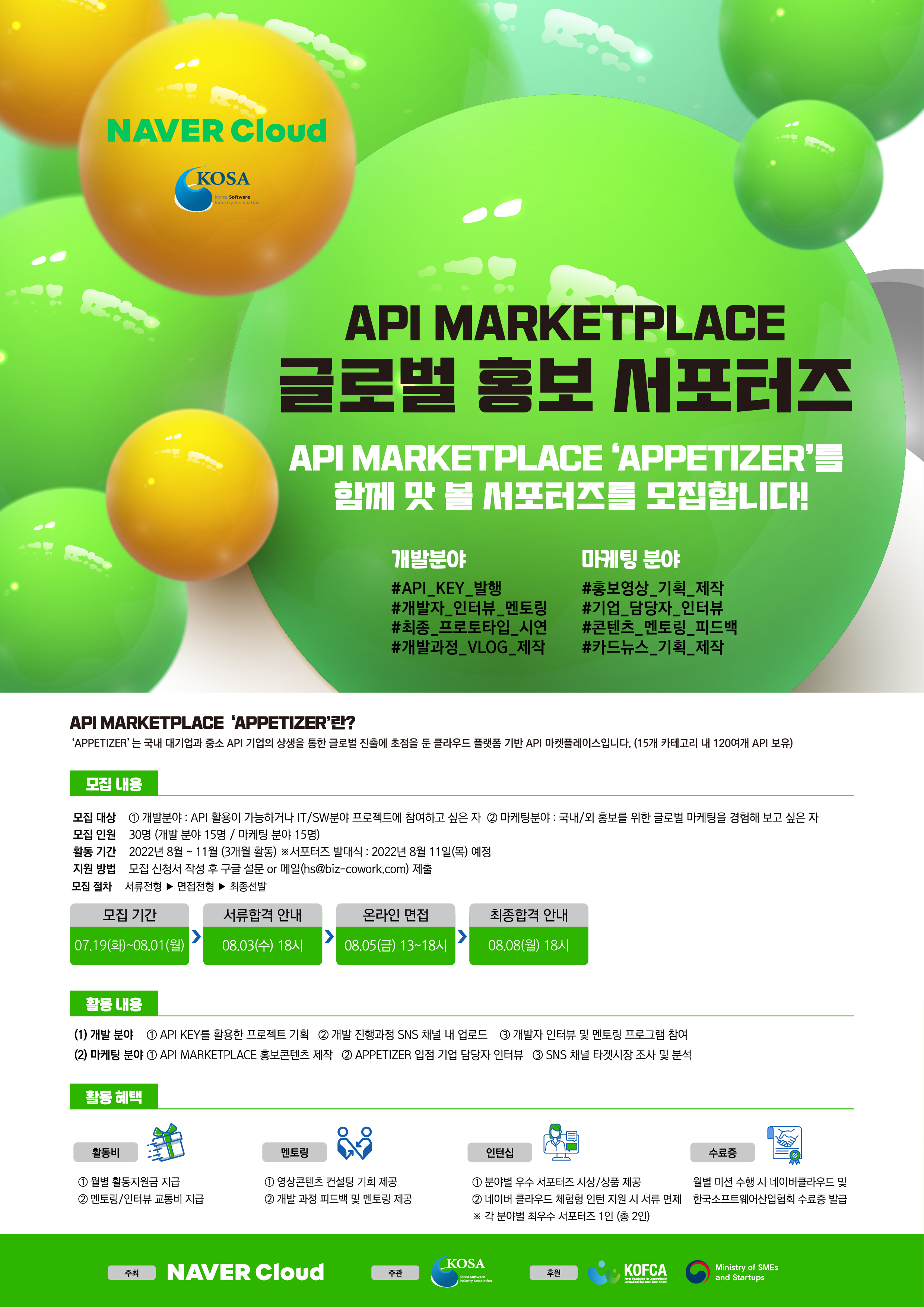 네이버 클라우드에서 API MARKETPLACE 글로벌 홍보 서포터즈를 모집합니다!