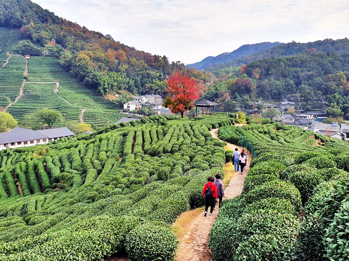 전설의 우물인 용정(龍井)을 보기 위해 차밭 사이의 좁은 길로 가노라니 활짝 개화한 차꽃이 향기를 선물로 주었다. 좀 더 내려가 관광객들이 다니는 큰길에 이르니 ‘항주시도시농업시범원구(杭州市都市農業示範園區)’라고 새긴 표지석이 보였다.