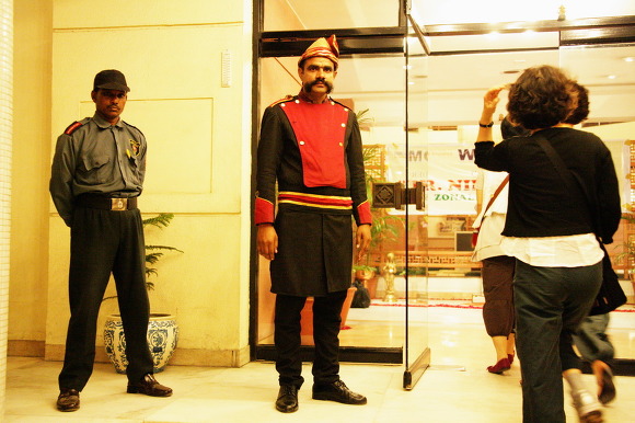 [타즈 뷰 호텔의 현관을 지키는 멋진 수염의 사나이]