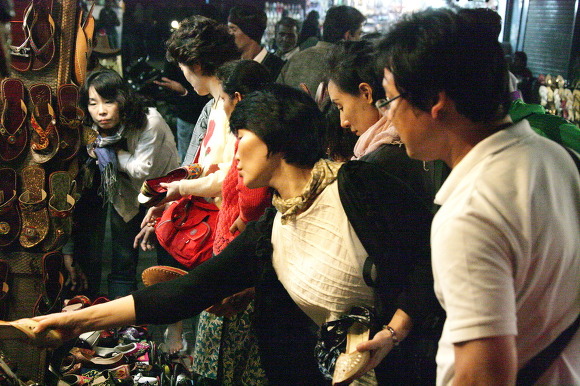 이런 모험을 두 차례 한 후 제법 근사한 상점들을 수십 곳 지나치니 이윽고 재래시장이 나왔다. 입구에는 수제 가죽신을 파는 가게가 있었는데, 대중들의 시선이 그곳에 꽂혔다. 고르고 신어보고 다시 바꾸길 30여분, 각자의 손에는 신발 한두 켤레씩이 들려 있었다. 시계를 보니 이미 일곱 시다.