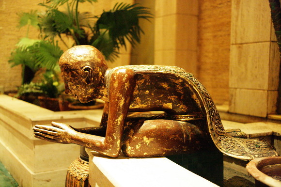시장을 떠난 우리는 아그라의 마지막 저녁공양을 하기 위해 ‘타즈 뷰 호텔’로 향했다. 이 호텔 또한 아름다운 정원을 갖추었으며, 특히나 우아한 인테리어가 기분 좋은 곳이었다. 우리가 공양할 곳은 중식당 ‘만다린(mandarin)’으로, 아주 불심 깊은 화교가 주인인지 사방이 불교적 분위기이다. 불상은 묘하게도 중국풍이었으며, 중국적인 조각이나 골동품이 보였다. 그 중에서도 가르침을 청하며 예경하는 스님상이 매우 특이했다. 음식은 매우 깨끗했으며, 특히나 손님을 배려하는 그들의 마음씀씀이가 아주 좋았다. 식당을 떠나며 들린 해우소(解憂所-화장실)에도 역시 꽃 공양 그릇이 있어 기분을 상쾌하게 해 주었다.