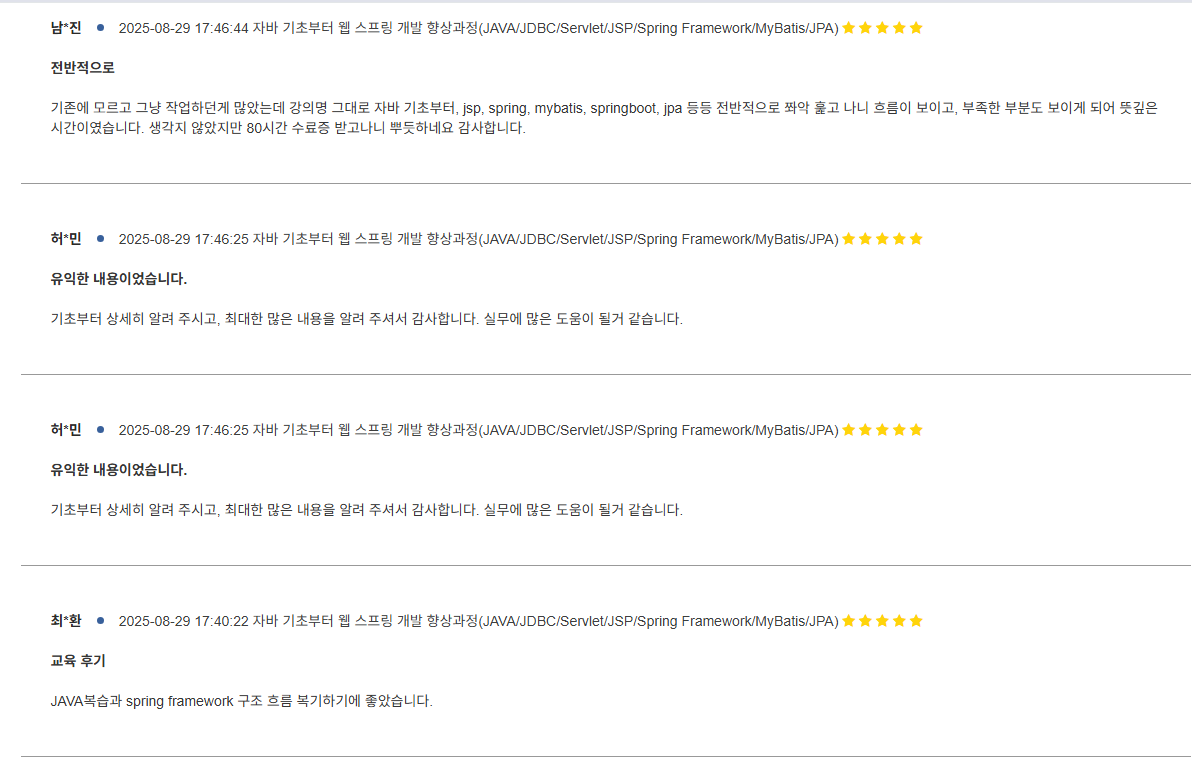 일반 교육학원 및 학교에서 배우는 자바이해 및 기술스택은 부족함이 있을겁니다.