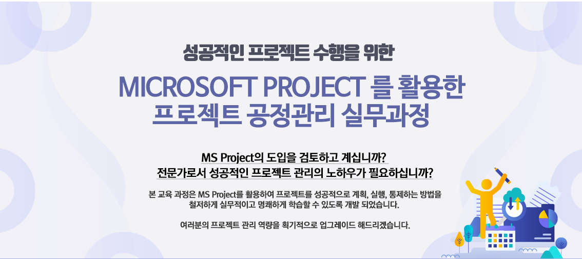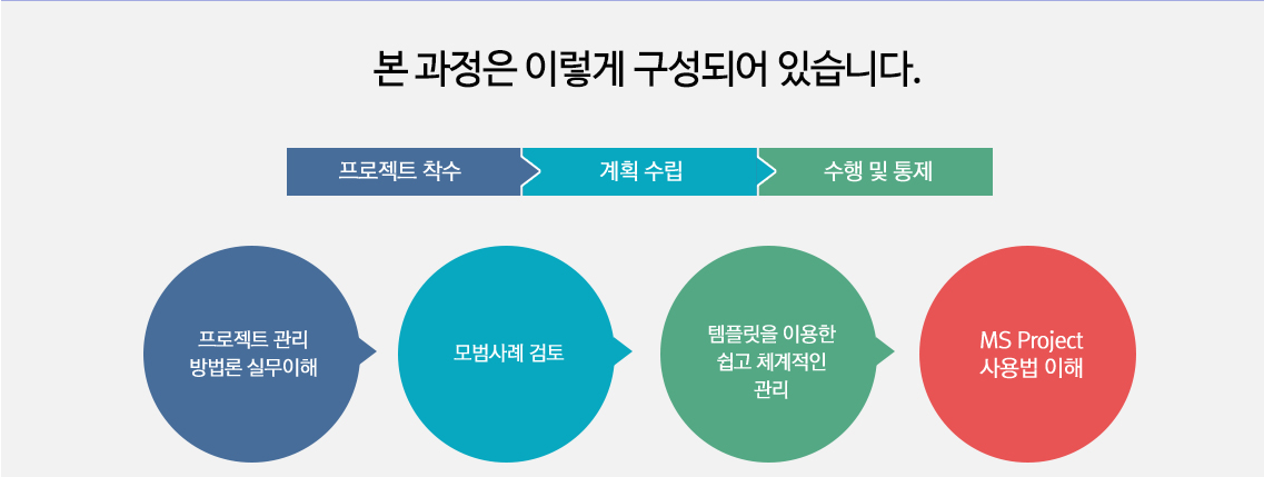 다양한 분야에서 성공적인 프로젝트 수행 및 관리를 위해 그에 맞는 프로젝트 전문교육을 훈련하고 있죠.