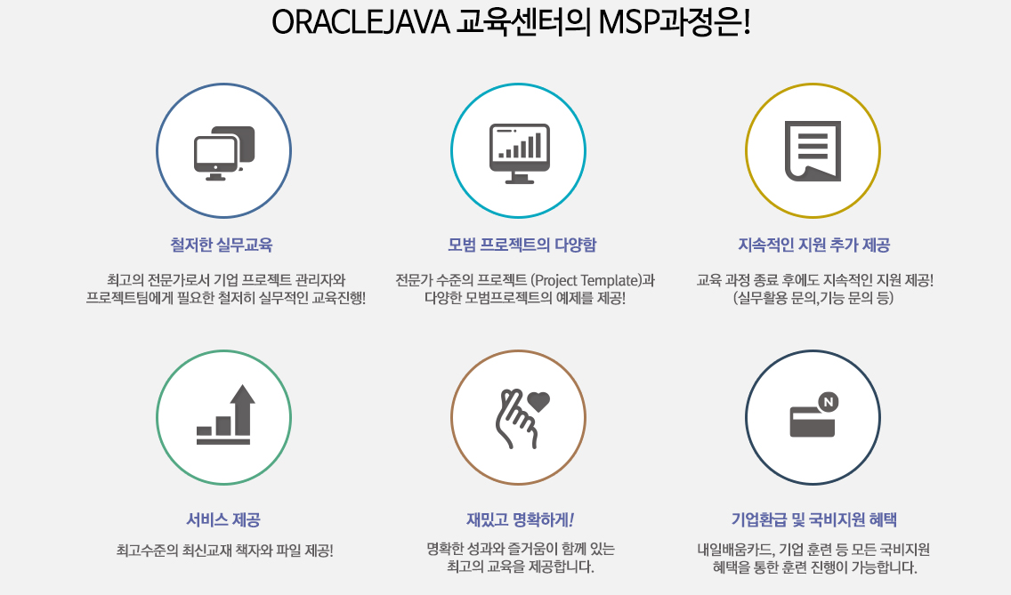 오라클자바교육학원은 지난 2018년도부터 프로젝트 전문교육을 훈련하고 있습니다.