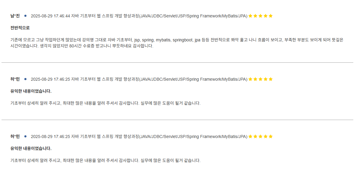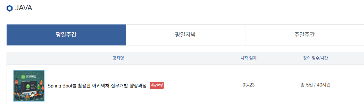 3월 평일반 스프링부트 실무개발 과정 추천