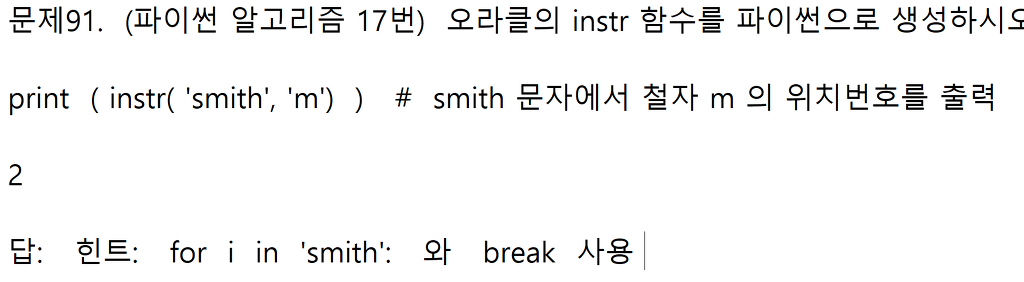 파이썬 알고리즘 17번. 오라클 instr 함수를 파이썬으로 생성하세요 ~ 작성자유연수|작성시간20.05.15|조회수45 목록 댓글 0 글자크기 작게가 글자크기 크게가 다음검색 현재 게시글 추가 기능 열기 북마크 공유하기 신고 센터로 신고 댓글 댓글 0 댓글쓰기 답글쓰기 댓글 리스트