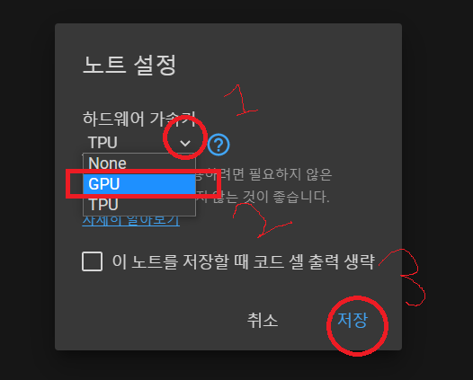 이를 GPU 연동으로 바꾸면 쉽게 GPU를 사용할 수 있습니다.