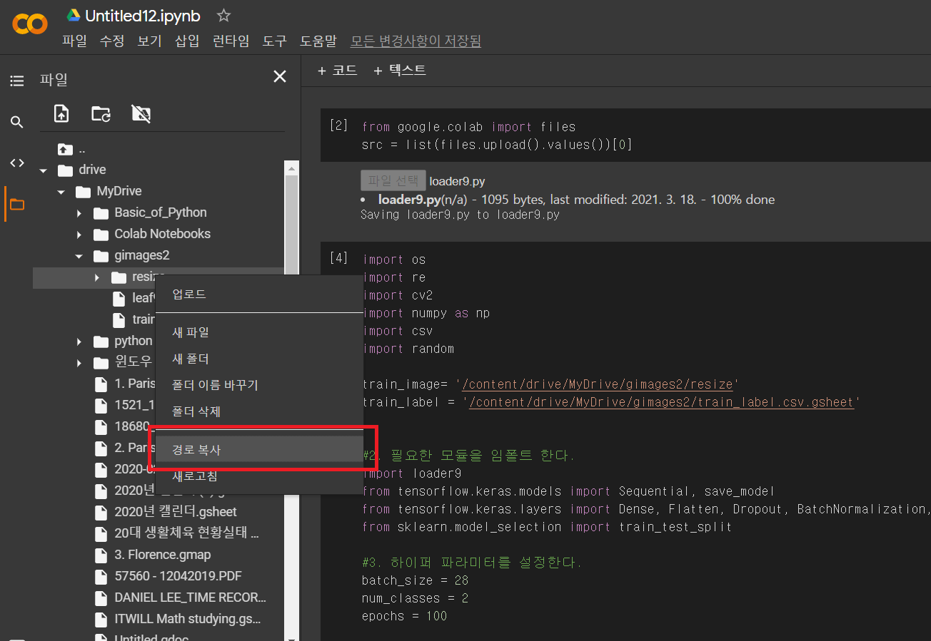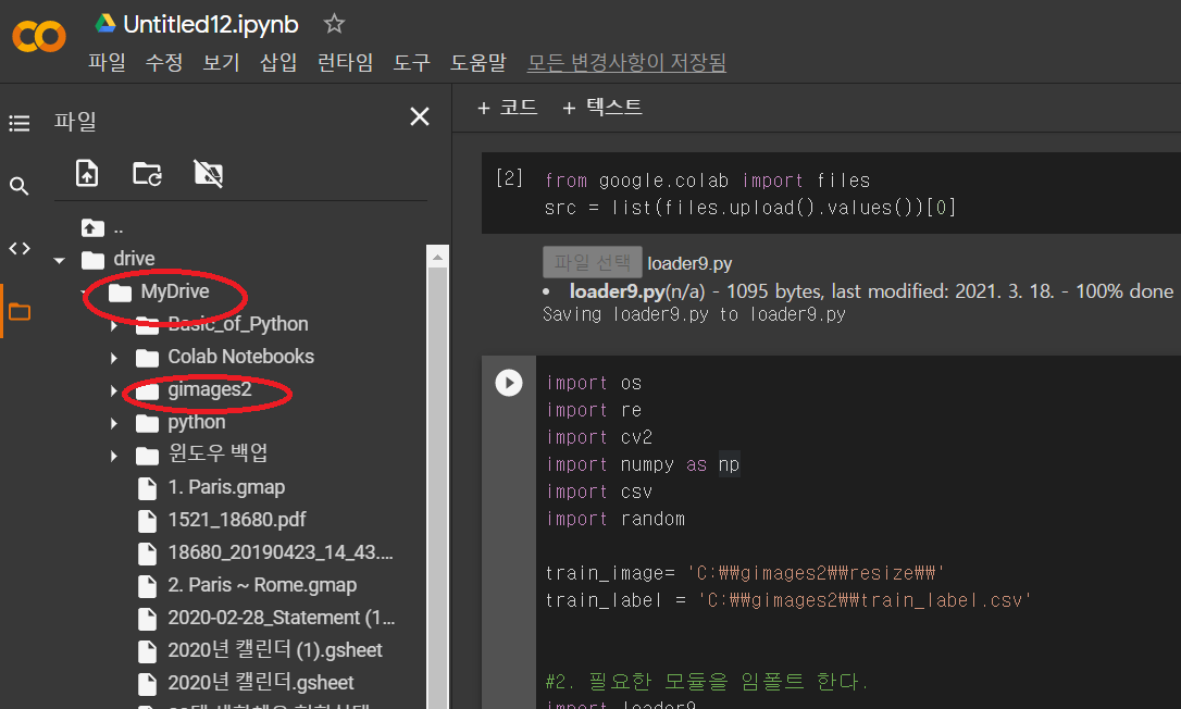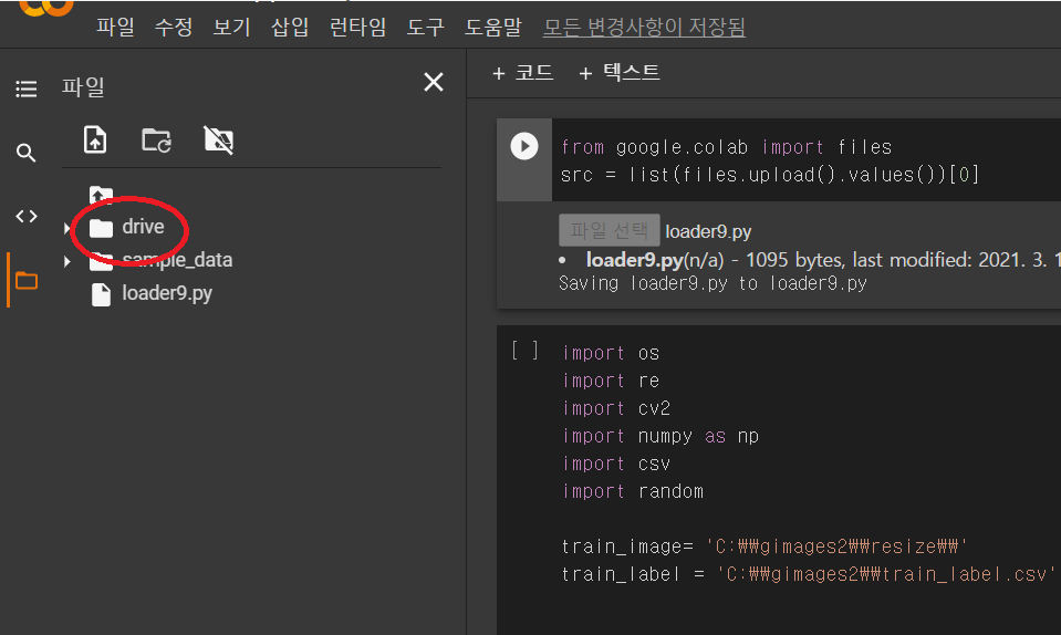 코랩은 우리가 흔히 쓰는 윈도우와 다른 리눅스 (우분투)를 쓰기 때문에 loader9.py를 약간 조정할 필요가 있습니다.