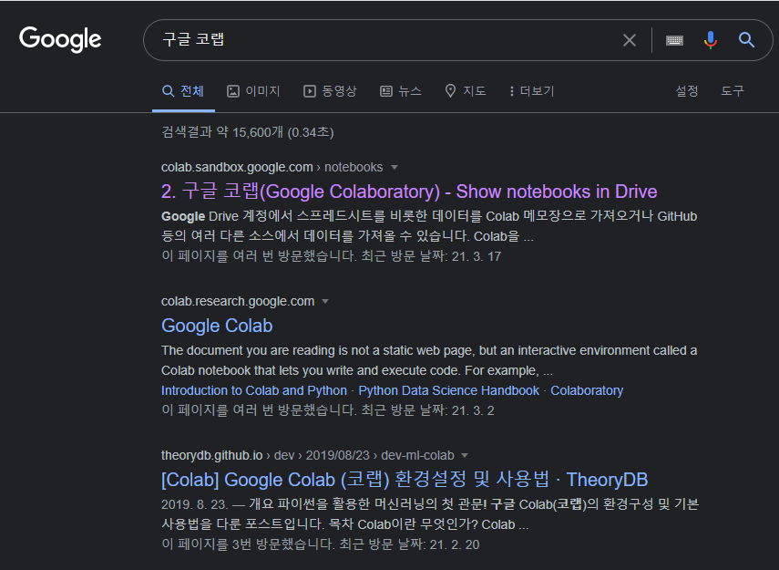2-1. 구글 코랩 접속