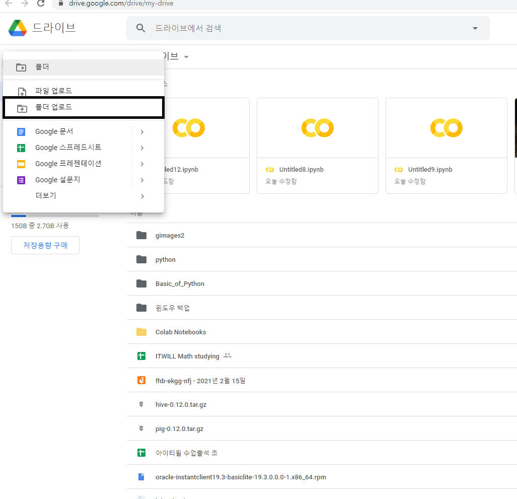 1. 구글 드라이브에 사진 폴더 업로드