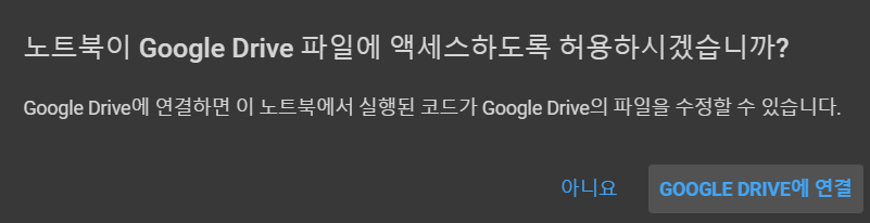 2. 코랩 접속 및 구글 드라이브와 연동