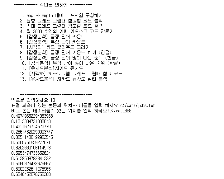 Re: 문제457. (오늘의 마지막 문제) 자카드 유사도 코드를 가져다가 아래와 같이 실행되게 하시오 ! 작성자15기_양희훈|작성시간22.07.06|조회수73 목록 댓글 0 글자크기 작게가 글자크기 크게가 다음검색 현재 게시글 추가 기능 열기 북마크 공유하기 신고 센터로 신고 댓글 댓글 0 댓글쓰기 답글쓰기 댓글 리스트