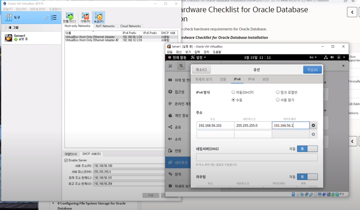 #43. 네트워크--> IP4 ---> 수동 ---> 아래와 같이 아이피 셋팅