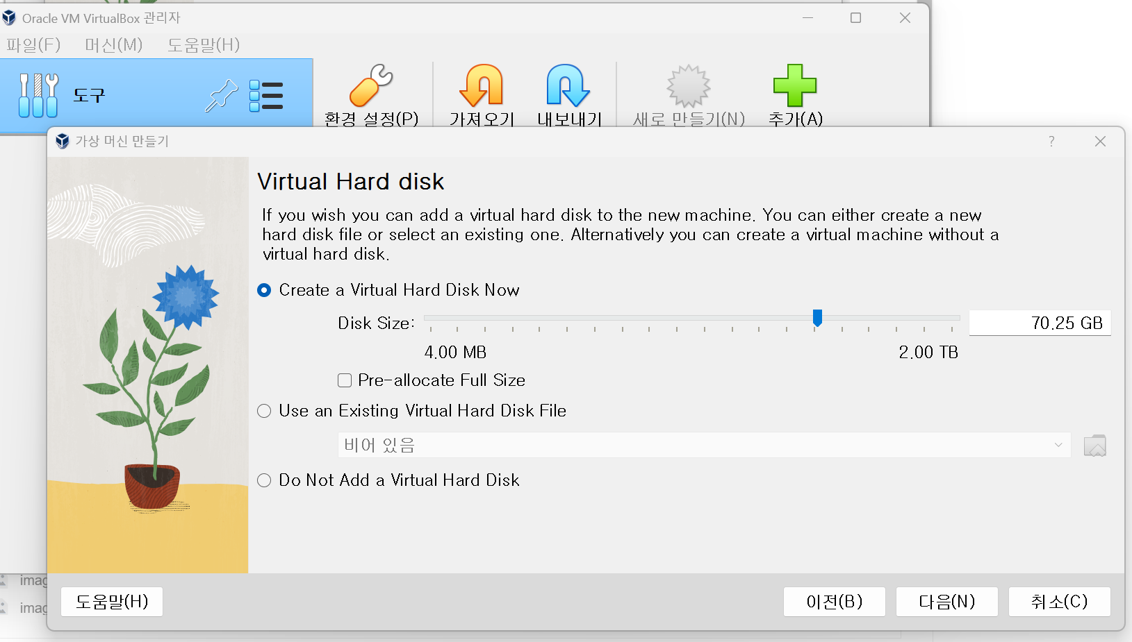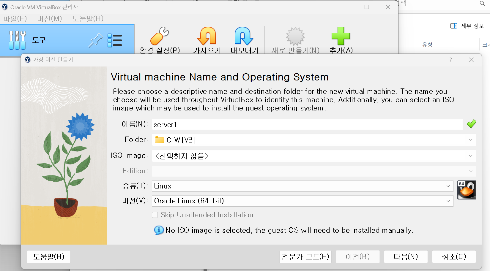 #13. virtual box 를 켜고 머신에 새로만들기를 누르세요.