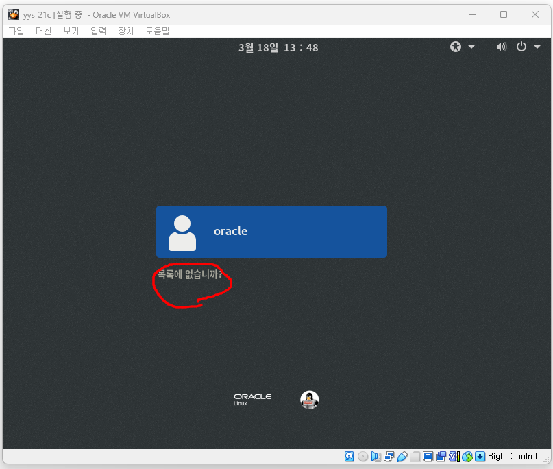 # 목록에 없습니까를 눌러서 root 유져로 로그인 합니다.