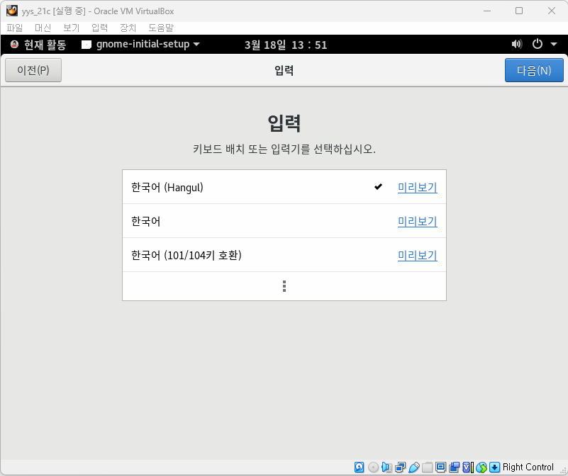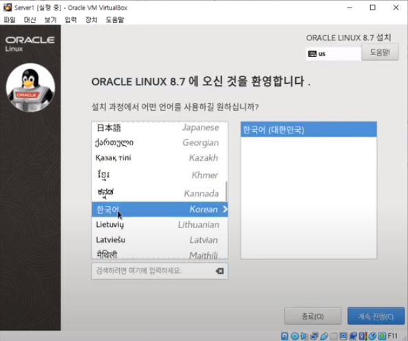 ##22. 설치할 언어는 한국어를 선택합니다.