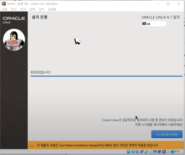 #30. 설치가 완료되면 시스템 재부팅을 누룹니다.