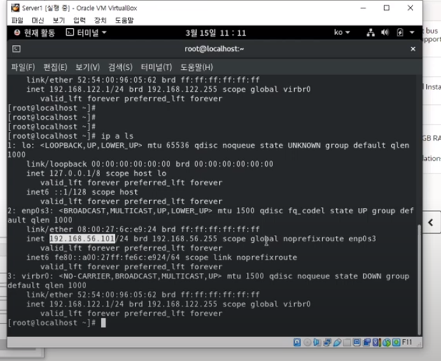 #44. 아이피 주소가 아래와 같이 변경되었는지 확인합니다.
